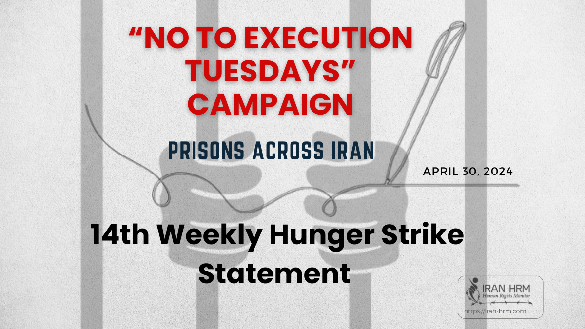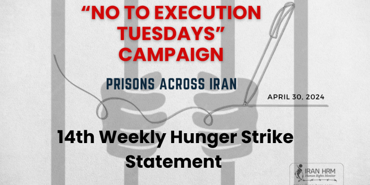 The hunger strike persisted into its 14th consecutive week on Tuesday, April 30, 2024, marked as the “Tuesday of Nine Executions.” Prisoners from Evin Prison (including Women’s Wards, 4, 6, and 8), Qezel-Hesar, Markazi Karaj, Khorramabad, Khoy, Naqadeh, Saqqez, Mashhad, and other facilities joined the strike, protesting the recent wave of executions.