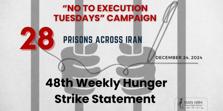 Prisoners throughout Iran are continuing the No to Execution Tuesdays campaign with hunger strikes on Tuesday, December 24, 2024. Meanwhile, several prisoners in Roudsar prison also declared their participation in this campaign last week, bringing the total number of prisons participating to 28.