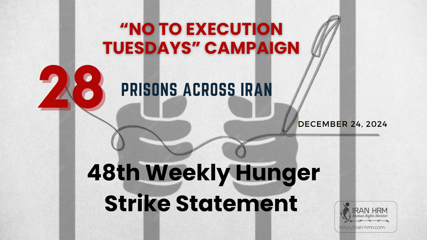 Prisoners throughout Iran are continuing the No to Execution Tuesdays campaign with hunger strikes on Tuesday, December 24, 2024. Meanwhile, several prisoners in Roudsar prison also declared their participation in this campaign last week, bringing the total number of prisons participating to 28.