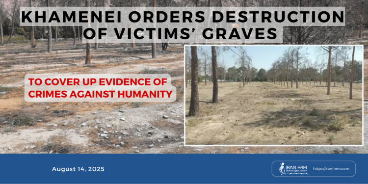 August 11, 2025 – Tehran: Acting under direct orders from Ali Khamenei, the Iranian regime has used heavy machinery to demolish and flatten graves in Section 41 of Behesht Zahra Cemetery – the burial site of thousands of political prisoners executed during the 1980s. Agents of the Ministry of Intelligence and security forces were deployed to the site to block families and members of the public. This act is the latest in a four-decade-long policy to erase the physical evidence of organized crimes against humanity.