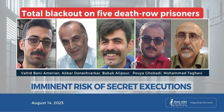 More than a week after the violent transfer of five political prisoners on death row—Vahid Bani-Amerian, Pouya Ghobadi, Akbar (Shahrokh) Daneshvarkar, Babak Alipour, and Mohammad Taghavi—there is a total blackout about their whereabouts or condition. On Friday, 8 August 2025, during a mass transfer from Greater Tehran (Fashafouyeh) Penitentiary to Evin, the five were separated from the others and taken to an undisclosed location.