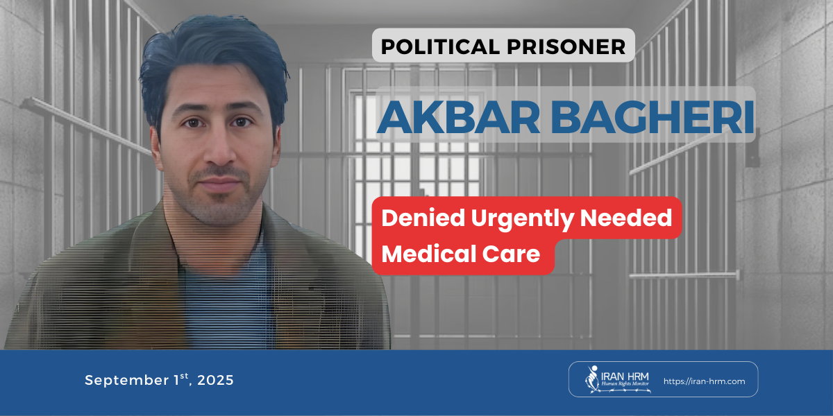 For more than two months, prison officials at Qezel Hesar have prevented political prisoner Akbar Bagheri from being transferred to specialized medical centers, despite his deteriorating health. Bagheri is suffering from serious gastrointestinal disorders, including intestinal inflammation and persistent stomach pain. According to those close to him, his condition has worsened to the point that even routine daily activities have become difficult. He urgently requires a colonoscopy and ultrasound. Nevertheless, Iranian authorities have so far refused to allow his transfer to a hospital.