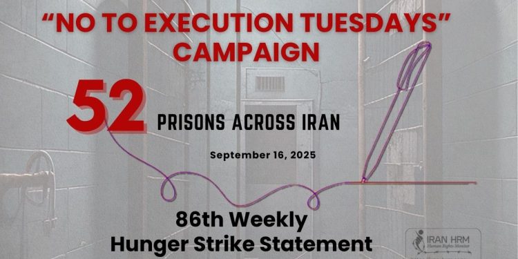On Tuesday, September 16, 2025, in its 86th week, the “No to Execution Tuesdays” campaign will see hunger strikes in the following 52 prisons: