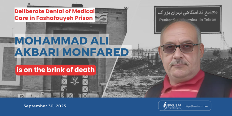 The official Legal Medicine Organization has confirmed that Mohammad Ali Akbari Monfared is “unfit to serve his sentence” and should be released or at least granted medical furlough. However, the Ministry of Intelligence has blocked this ruling. His life is now in imminent danger, and his case stands as a stark example of the regime’s deliberate use of illness as a tool of pressure and torture against political prisoners.