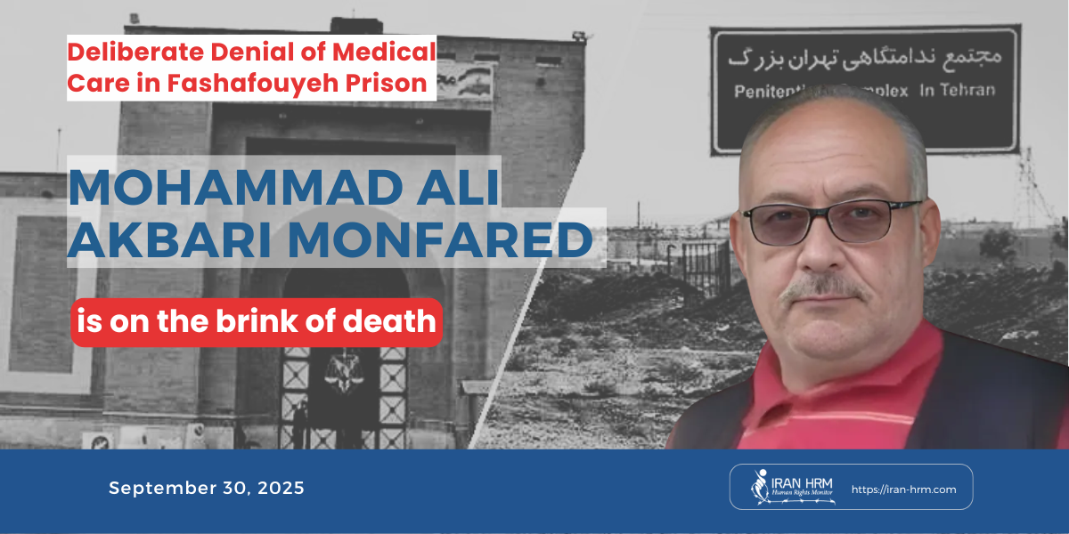 Mohammad Ali Akbari Monfared is on the brink of death. His continued detention in Fashafouyeh Prison, despite his critical medical condition and the official ruling confirming his unfitness for imprisonment, places full responsibility on the judiciary and security agencies of the regime.