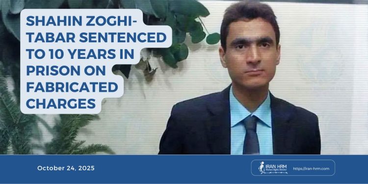 Tehran – October 22, 2025: Shahin Zoghi-Tabar, a 38-year-old political prisoner and one of the recent detainees in Tehran, has been sentenced to ten years in prison by Branch 26 of the Revolutionary Court, presided over by Judge Iman Afshari. The verdict, based on baseless accusations and without legal evidence, once again exposes the political nature of Iran’s judiciary and its use as a tool of repression.
