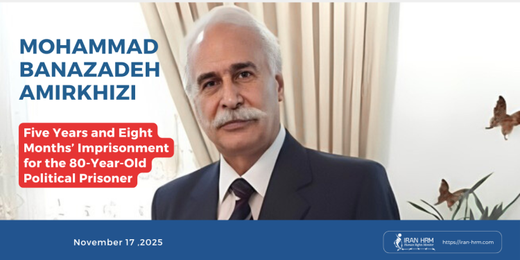 Mohammad Banazadeh Amirkhizi is 80 years old and suffers from severe medical problems, including heart disease, a torn knee meniscus, prostate cancer, and age-related frailty. Physicians had previously emphasized the need for specialized and continuous medical care in his case. Enforcing this heavy prison sentence could place his life in serious danger.