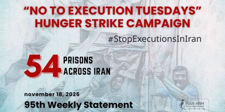 The 95th week of the “Tuesdays Against Executions” campaign continues across 54 prisons in the country, marked by the hunger strike of incarcerated participants. This week’s statement, recalling the martyrs of the November 2019 uprising, declares: