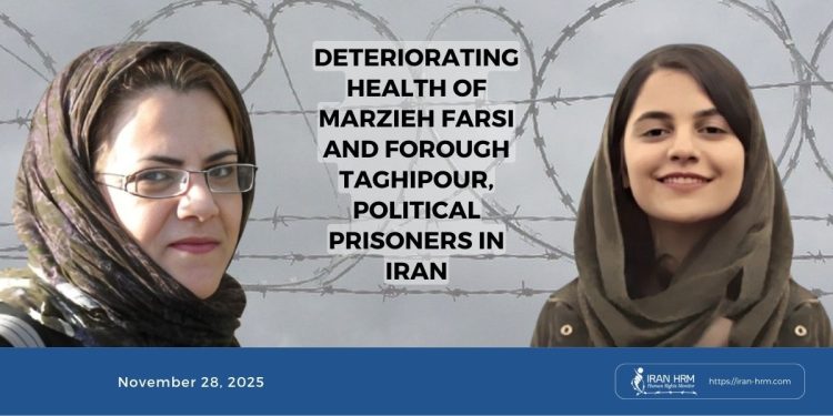 The physical condition of two political prisoners, Marzieh Farsi and Forough Taghipour, both serving five-year sentences in the women’s ward of Evin Prison, has become increasingly alarming in recent weeks. Numerous reports from Ward 6—an overcrowded section long criticized for its high humidity, lack of facilities, and unsanitary environment—indicate escalating health problems, deprivation of medical care, and continuous security pressure on both prisoners. Their families and human rights defenders have repeatedly raised concerns about their deteriorating health, yet judicial and security authorities, as well as the Prison Organization, have failed to provide any response.