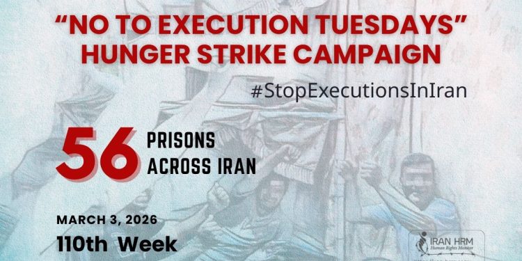 Members of the “No to Execution Tuesdays” campaign, in the 110th week of their activities, are on hunger strike on Tuesday, March 3, 2026, in 56 prisons across the country. While sympathizing with the suffering of the people amidst the current war conditions, they emphasized their determination for a transition to democracy and the end of the Velayat-e Faqih regime. Pointing to the shocking statistic of over 65 executions since February 20 and the issuance of death sentences for detainees of recent uprisings, these prisoners warned that the government’s killing machine continues to claim victims relentlessly. While condemning the confirmation of death sentences for political prisoners, the participants in this campaign demanded immediate attention from international bodies regarding the situation of prisoners and the referral of the regime’s crimes file to the United Nations Security Council.