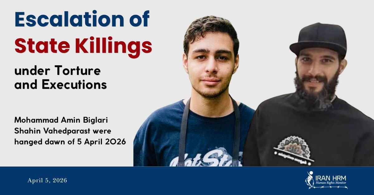 At dawn on April 5, 2026, the death sentences of Mohammad-Amin Biglari and Shahin Vahedparast, detainees of the January 2026 nationwide protests, were carried out at Qezel Hesar Prison. The charges against them were “intent to assault an armory” and “acting against national security.” Reports indicate that confessions were obtained under torture and served as the primary basis for the sentences. Furthermore, leaked videos of the fire at the “Mahmoud Kaveh” Basij base in East Tehran, along with statements from defense attorneys, challenge the official state narrative. These two individuals were sent to the gallows just three days after their co-defendant, Amir-Hossein Hatami, 18, was executed. These sentences were issued in a rushed and unfair process, less than a month after their arrest.