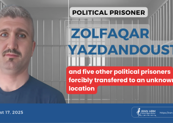 Read moreDetailson June 9, Zolfaghar Yazdandoust, along with five other political prisoners, was transferred to an unknown location following their protest...